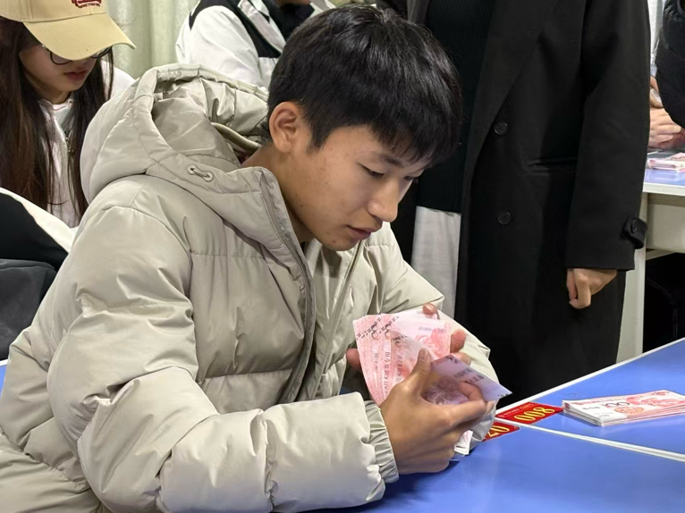 本次竞赛分为初赛与决赛两个阶段。在初赛现场,各位参赛同学均以饱满的热情参与点钞竞赛;现场的志愿者则负责计时与核查点钞结果,以保障比赛的公正性与秩序。经过角逐,表现突出的选手成功晋级至决赛,充分体现了同学们在点钞方面的坚实基础与精湛技艺。决赛现场,现场氛围较之初赛更为紧张且激烈。比赛一开始,选手们便争分夺秒地处理钞券,其动作熟练而流畅。经过三轮激烈的比赛,共有11名参赛选手荣获佳绩,他们以卓越的表现为此次点钞比赛画上了完美的句点。