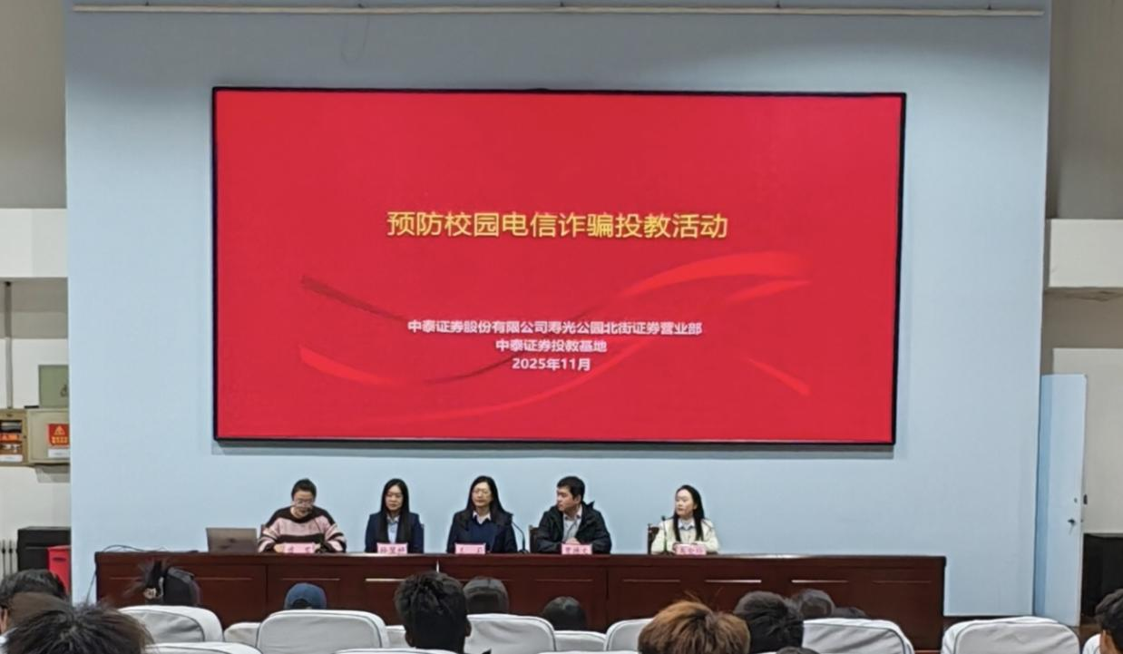 为提升同学们反诈风险意识,树立科学财商观,suncitygroup太阳集团于11月4日在经管报告厅举行“反诈进校园,财商护成长”主题讲座,讲座特邀中泰证券寿光营业部经理孙翌婷担任主讲,由学院团总支书记褚雪主持,中泰证券寿光营业部团队成员及2025级相关专业学生共同参与。