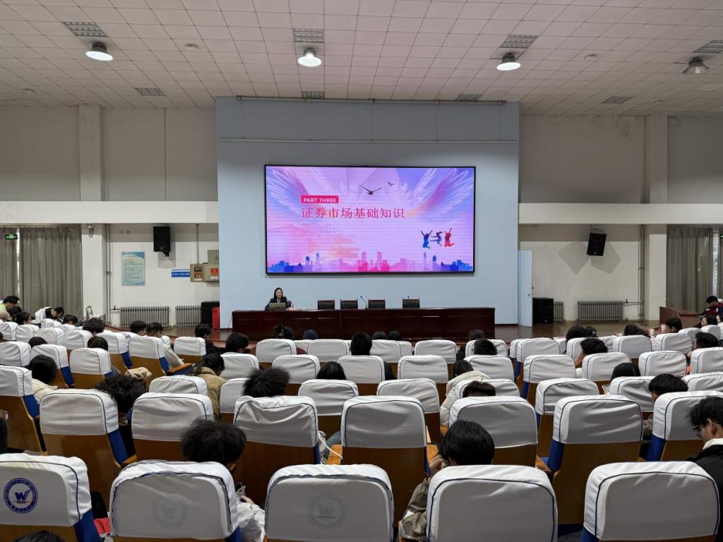 讲座伊始,孙翌婷经理首先介绍了中泰证券股份有限公司的基本情况。随后,她结合真实诈骗案例,深入剖析了当前常见的诈骗手法,并重点讲解了“三不一多”防骗原则,帮助同学们增强风险防范意识。接着,孙翌婷经理围绕我国证券市场发展历程、A股市场概况、主要交易品种的收益特征以及股票投资基础理论等四个方面,系统阐述了证券市场的基本知识,为同学们构建起清晰的金融认知框架。最后,孙翌婷经理就科学理财理念展开深入讲解,并梳理了金融行业的就业前景与发展路径,不仅助力同学们树立正确的财商思维、掌握实用的理财防骗技能,也为有志于进入金融行业的学生指明了职业发展方向。