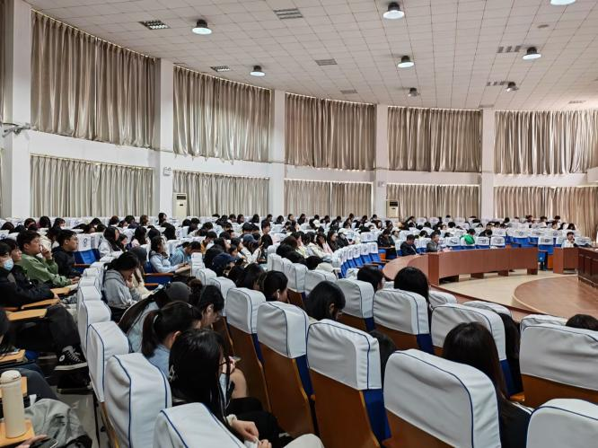 讲座中,徐阳主任结合十余年校园招聘与校企合作实践经验,围绕求职全流程展开讲解,从求职心态、简历制作、面试技巧、主动出击四个核心维度分享实操方法和技巧。他指出当前大学生求职存在迷茫、准备不充分等问题,并告诉同学们在求职过程中要摆正自身位置、精准自我定位,理性看待专业对口问题,树立“找工作而非找专业”的求职理念。随后,徐阳主任细致讲解简历制作要点与投递技巧,明确提出简历需突出岗位匹配度、杜绝造假行为,通过拆解面试常见问题与避坑要点,分析销售、行政、新媒体等岗位的核心能力要求,并引导学生提前做好职业规划,主动与企业沟通对接,积极把握就业机会。