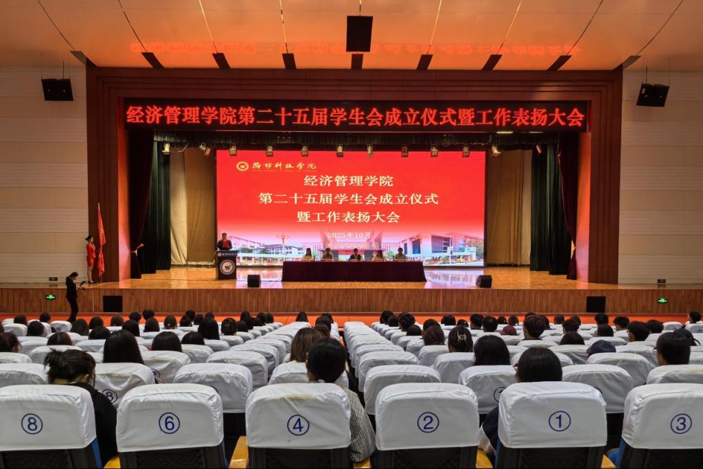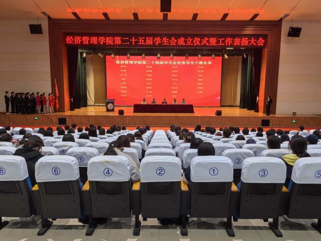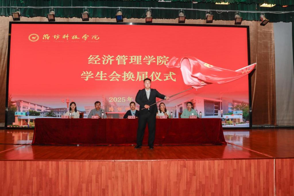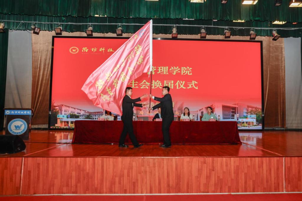 在全体参会人员的共同见证下,第24届学生会主席莫竞超举起象征着责任与传承的会旗,郑重地交至第25届学生会主席赵文晰手中。这一刻,旗帜的交接不仅是职务的更替,更是一种精神的传递、一份使命的延续。这一庄严仪式,象征着学生会生生不息的精神,激励着新一届团队继往开来,在传承中创新,在奉献中成长,共同书写经管学院学生工作的新篇章。