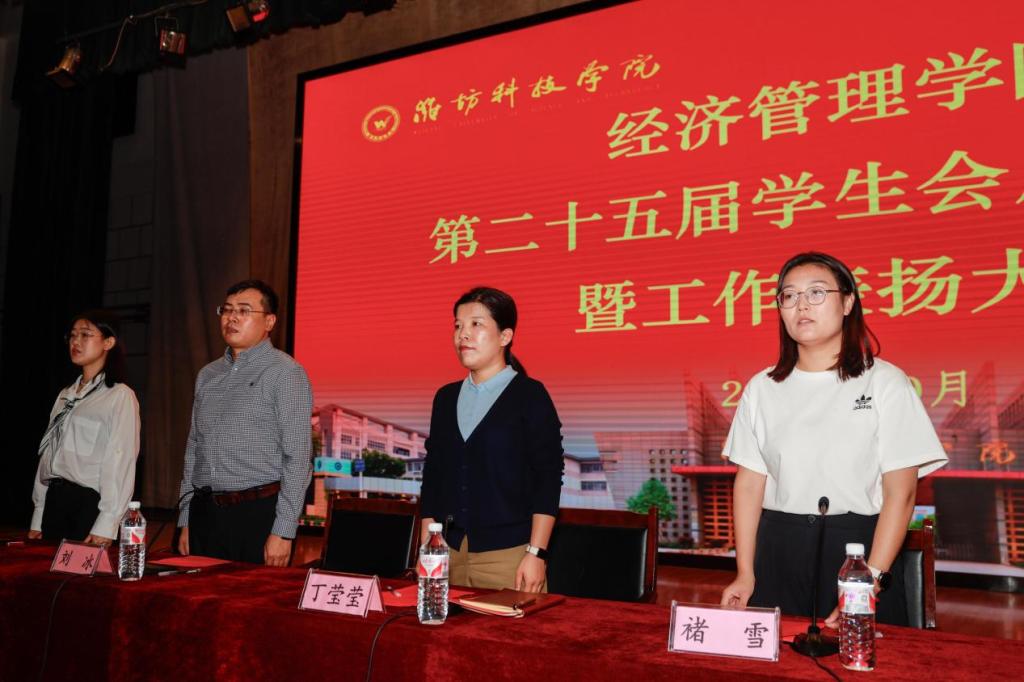 为表扬优秀学生干部、推动学生会工作传承与发展,并激发新一届学生会成员的工作热情。suncitygroup太阳集团于10月9日在国际会议中心举行第二十五届学生会成立仪式暨工作表扬大会。suncitygroup太阳集团院长丁莹莹,副院长刘冰,学生科科长高文慧,党建组织员刘洁及学生会各部门业务指导老师和全体学生会干部参加本次会议,会议由团总支书记褚雪主持。