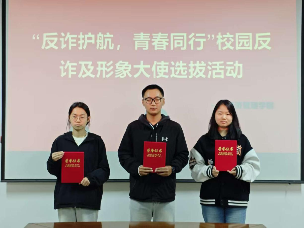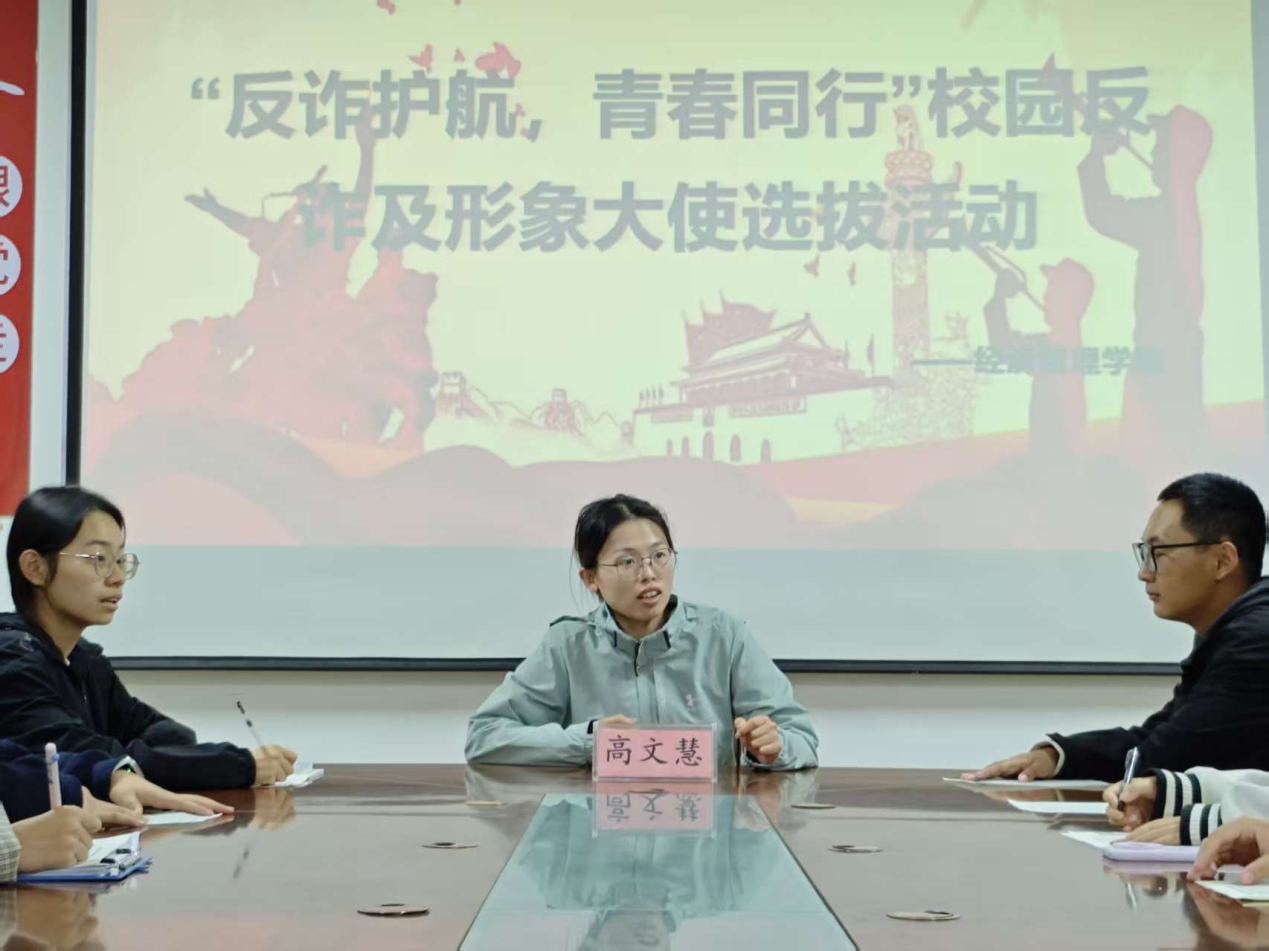 在“经管反诈形象大使”选拔环节,评审从反诈知识掌握程度、语言表达能力及个人亲和力三个维度对参赛者进行综合考核,最终遴选出3名同学担任经管反诈形象大使。为持续发挥其示范引领作用,现场同步建立了形象大使长效培养机制,并制定《校园反诈宣传任务清单》,明确进班宣讲、内容制作等具体职责,着力构建“以学生带动班级、以班级辐射校园”的反诈宣传网络,推动校园反诈工作持续走深走实。